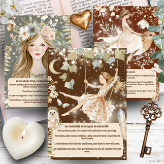 C’est un compagnon de chemin, à utiliser à votre rythme, pour avancer avec plus de clarté, de douceur et de confiance. Si vous avez envie de prolonger concrètement ce que vous venez de lire, de vivre ces rituels chez vous et d’installer une relation plus sereine à l’abondance, alors cet oracle est fait pour vous.